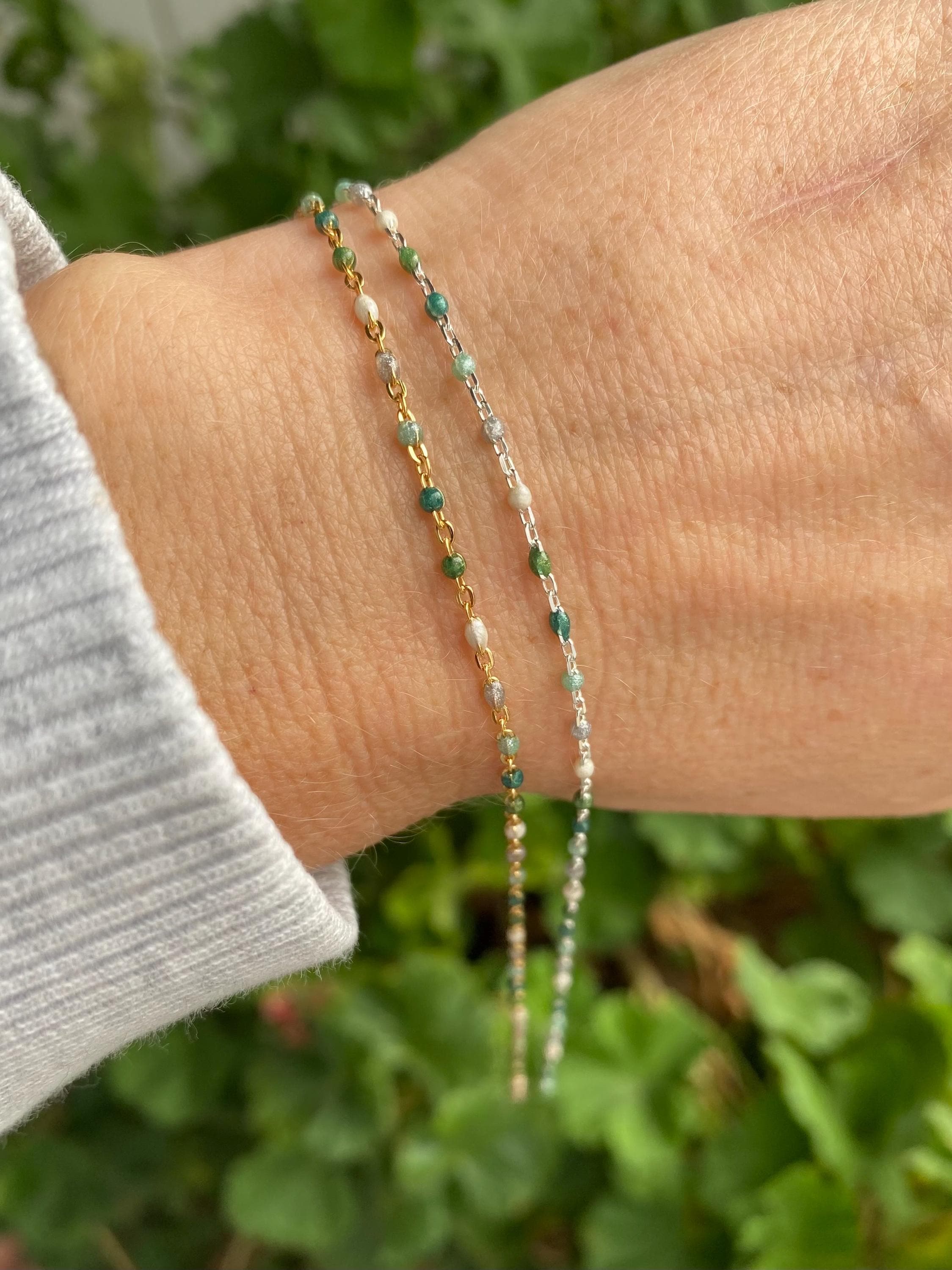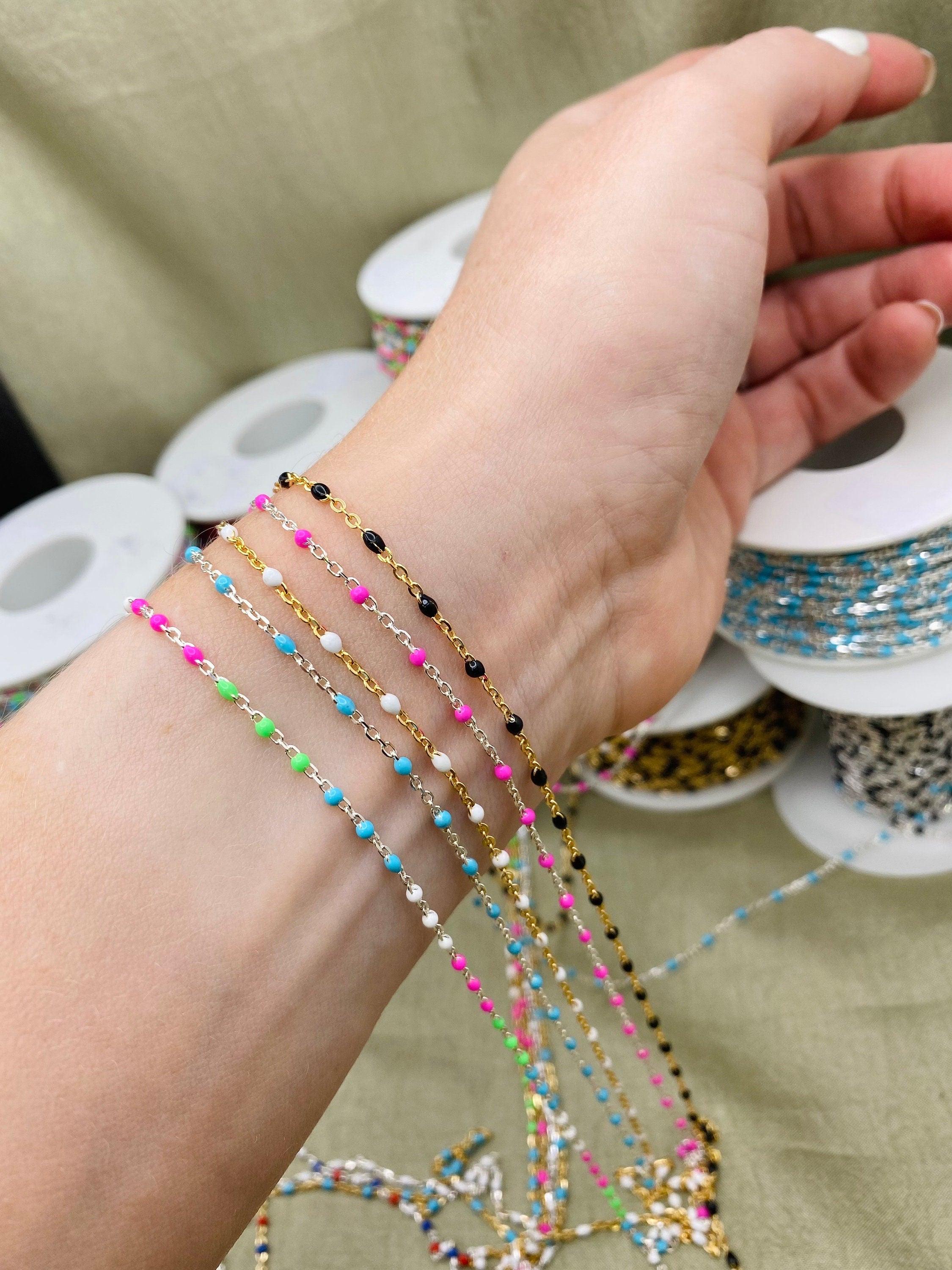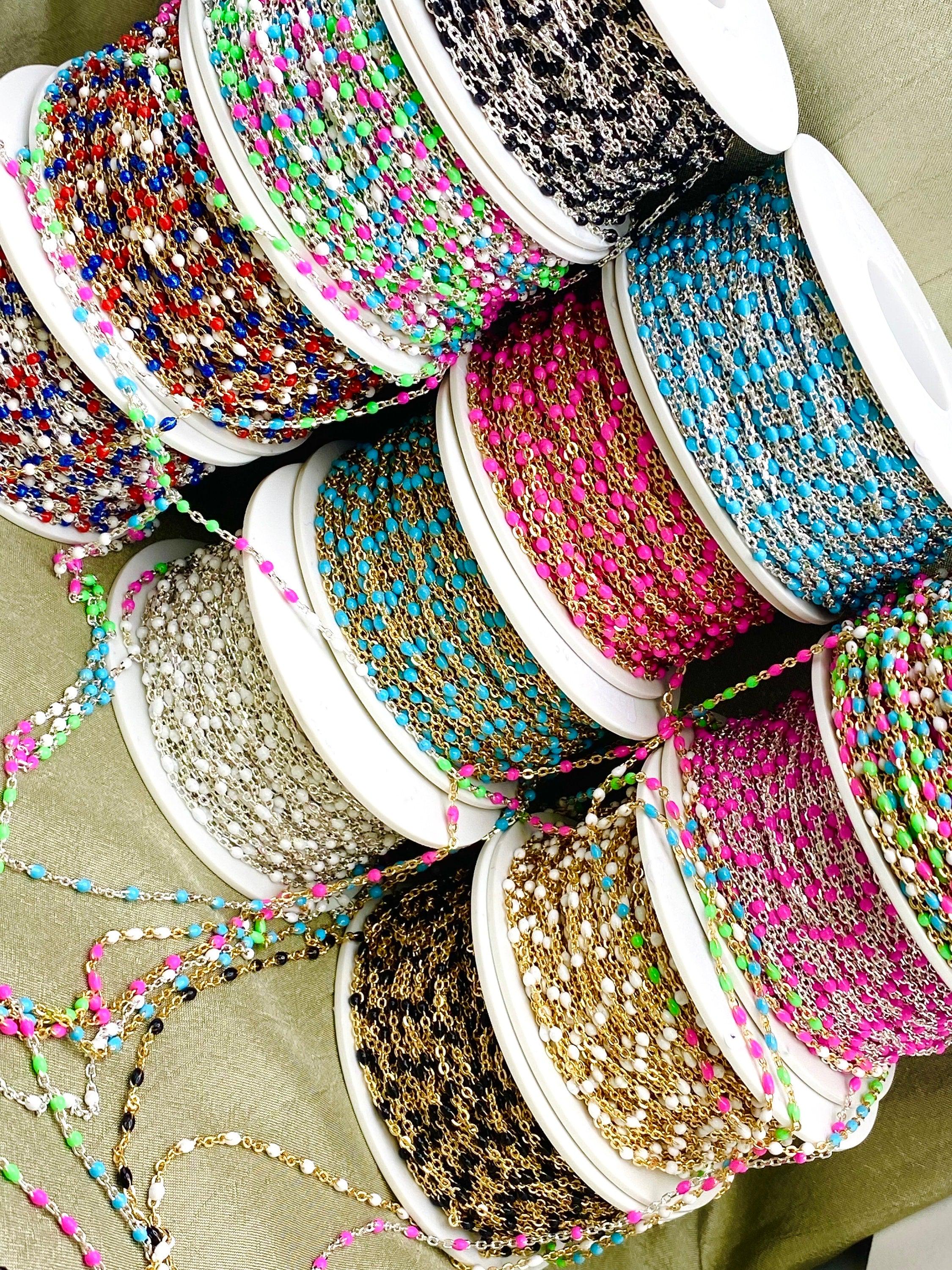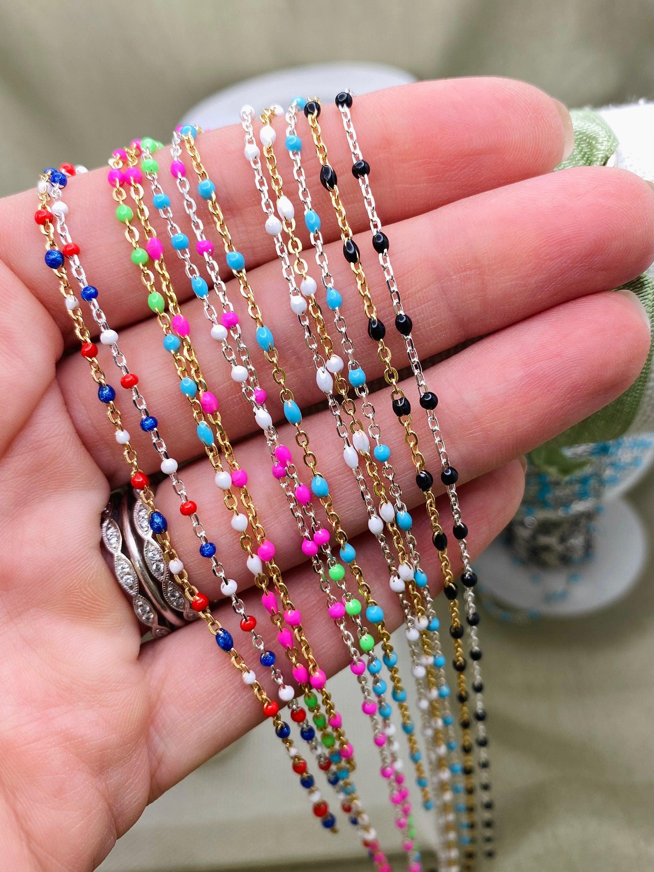 Our Glacier chain features 5 Pearlescent Colors: White, Grey, Blue, Blue Green and Sage