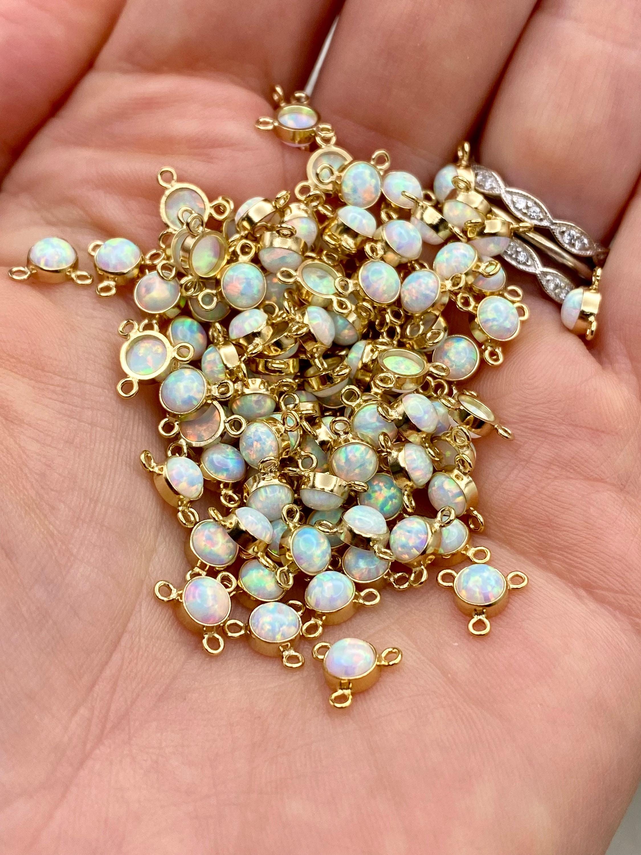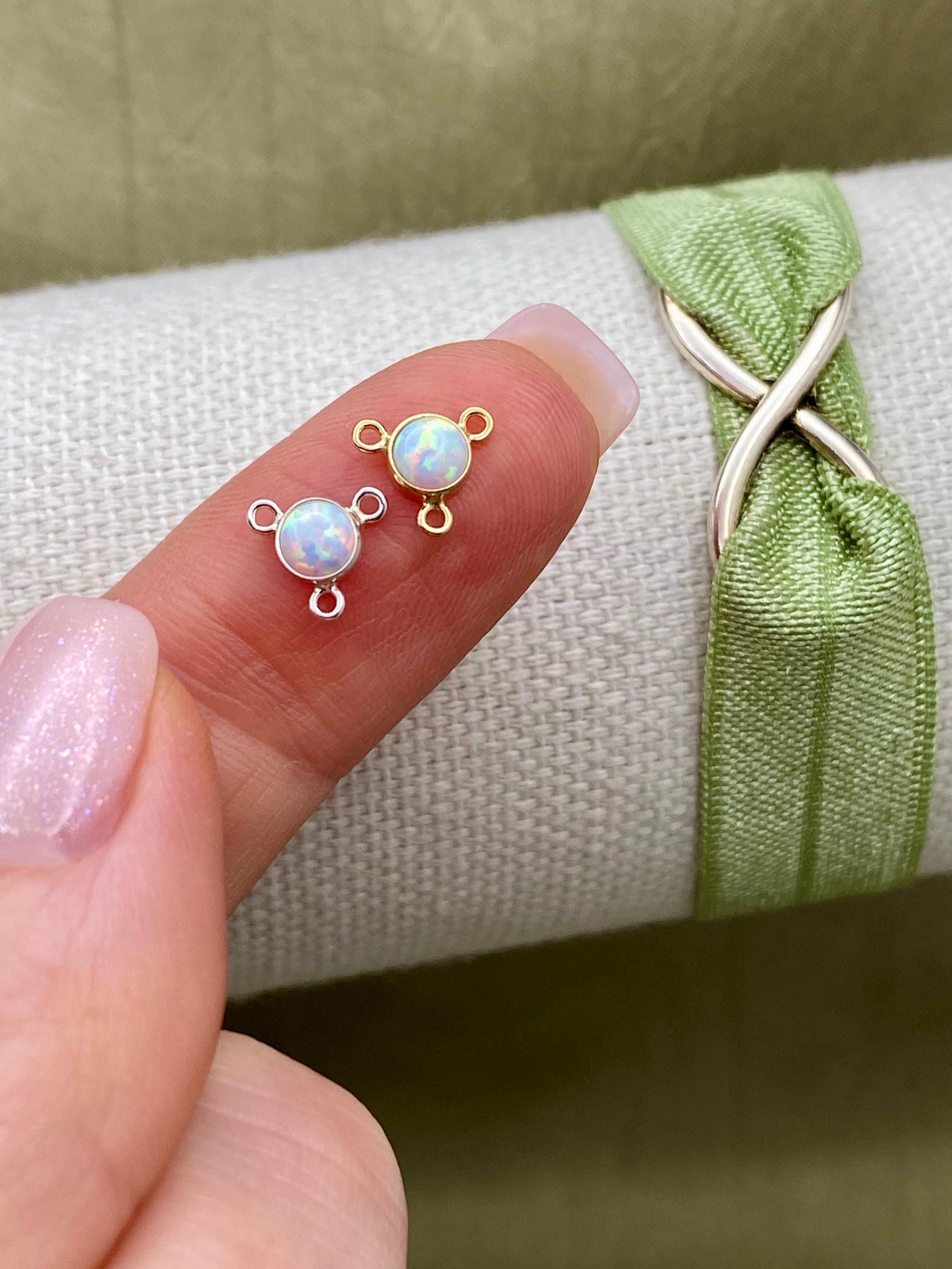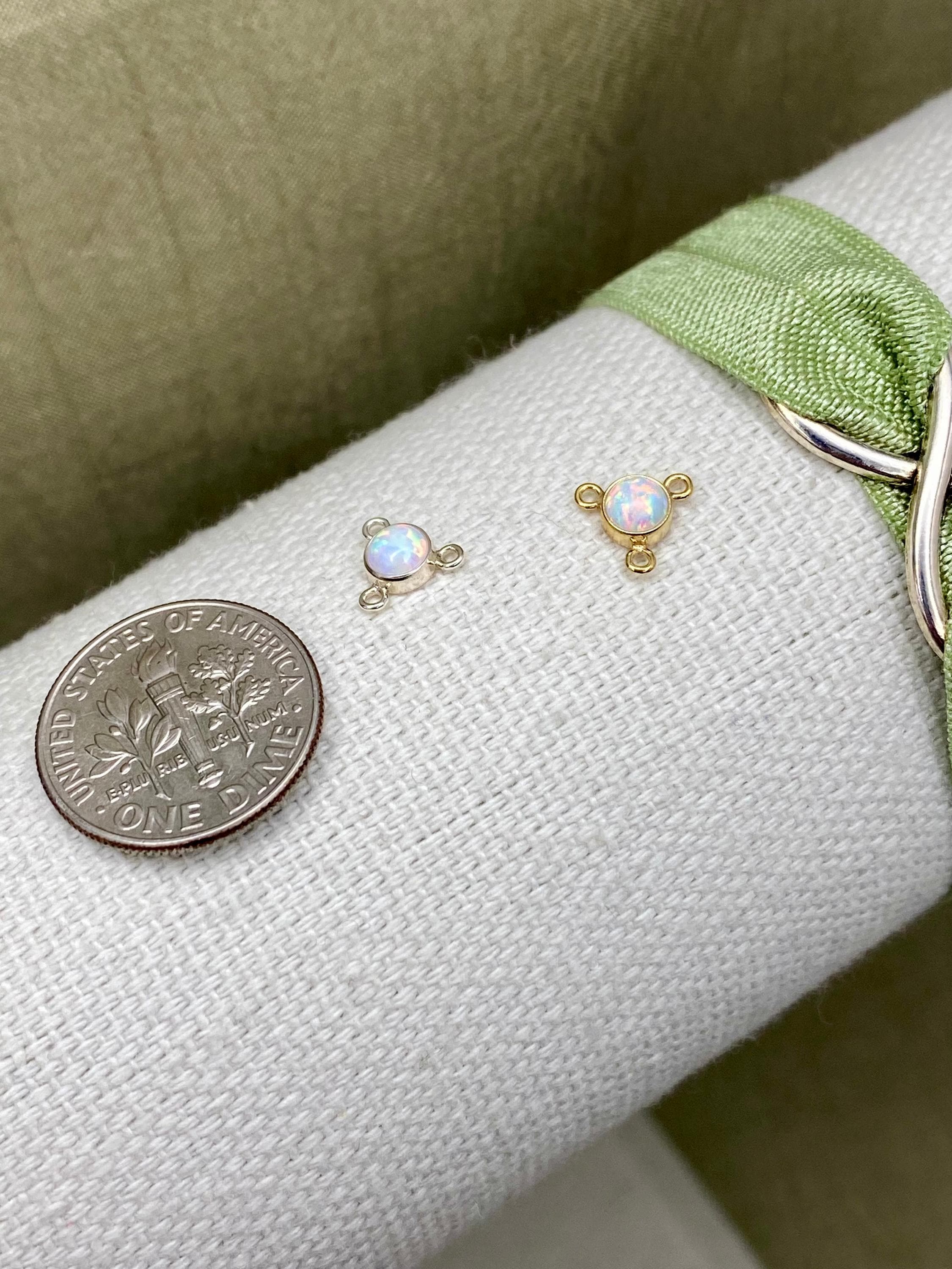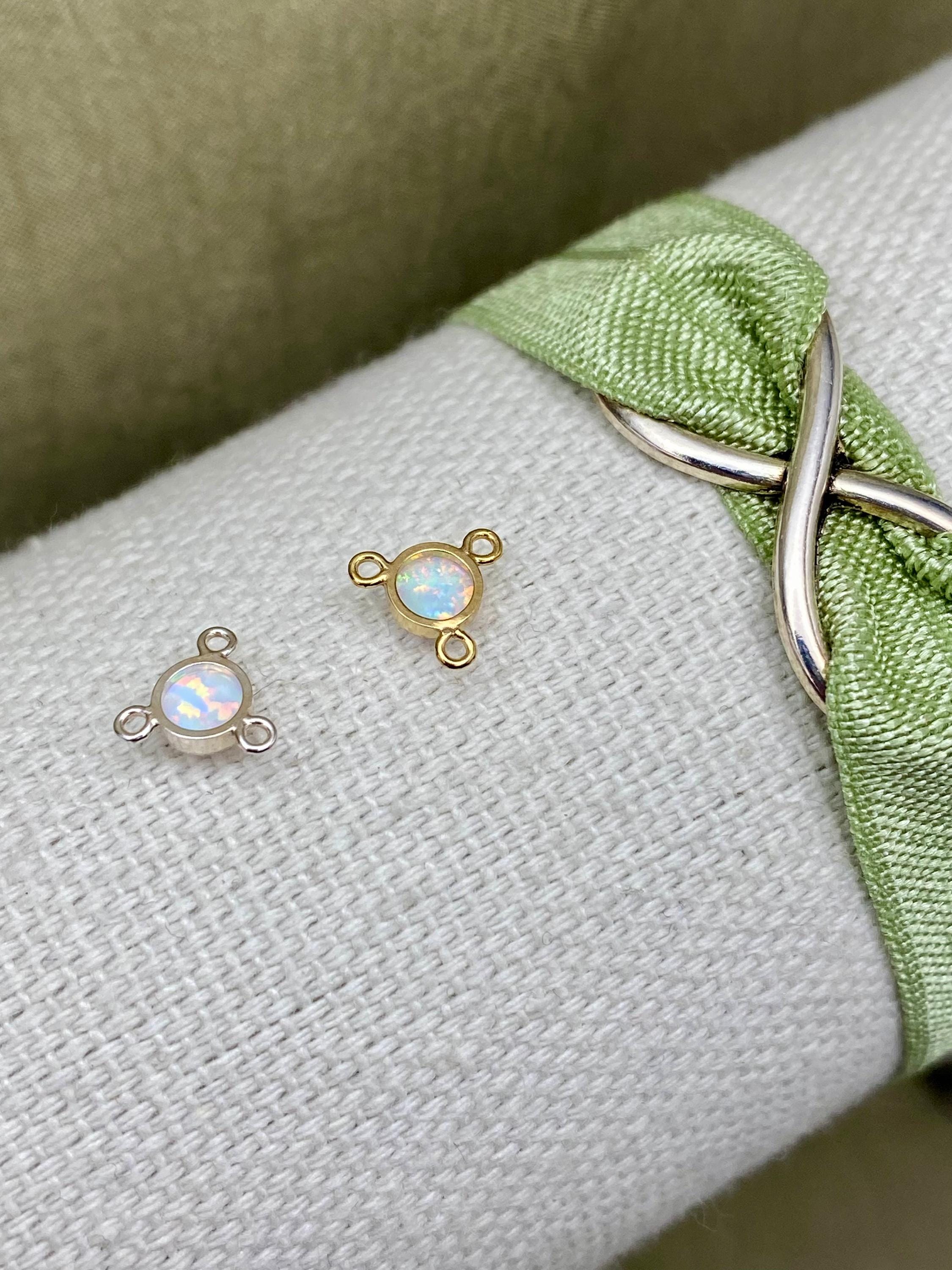 All components are 14kt gold filled or 925 Sterling Silver with a synthetic opal.